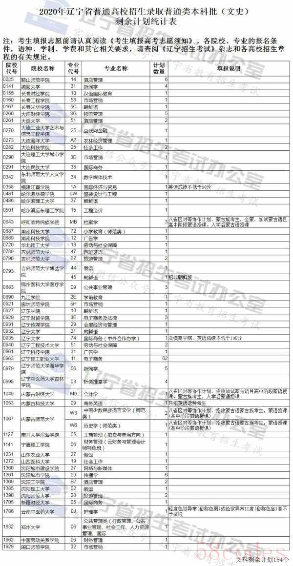 2020年辽宁省普通高校招生录取普通类本科批安排两次“征集志愿”补充录取。现就公布普通类本科批剩余计划和填报第一次“征集志愿”有关问题说明如下: