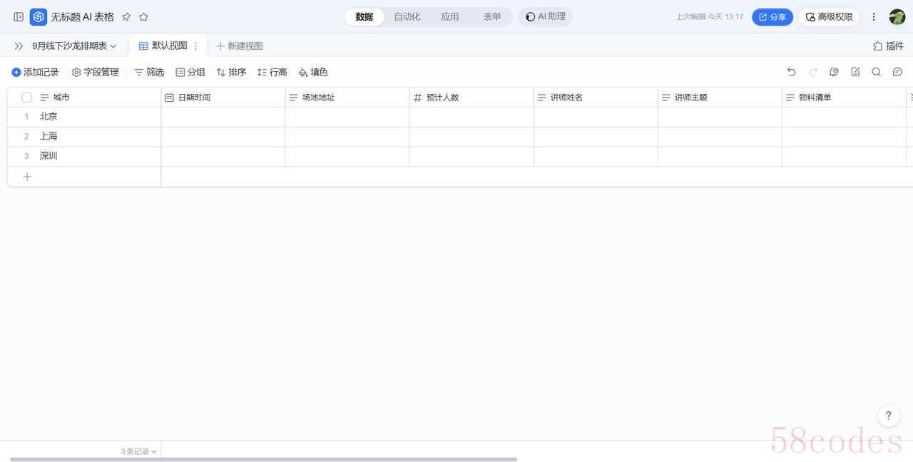 以前做季度活动计划表,光是确定列名就能耗掉半小时。就拿“3 月线下沙龙排期表”来说,得琢磨清楚:城市、日期、场地、预计人数、讲师、物料清单、预算、实际花费、报名链接…… 少一列后期就得补,多一列又显得冗余。