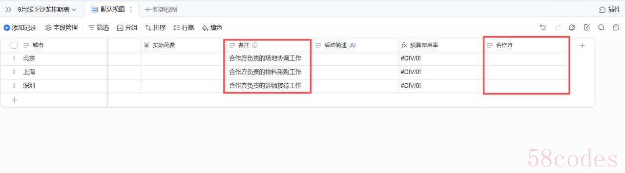 更惊喜的是改表的时候。我发现忘了加“合作方”信息,直接在对话框补了句“再加个合作方列,备注里写清楚他们负责啥”,表格秒加新列,备注栏的示例文字还自动改成了“合作方负责场地布置 / 设备调试”。