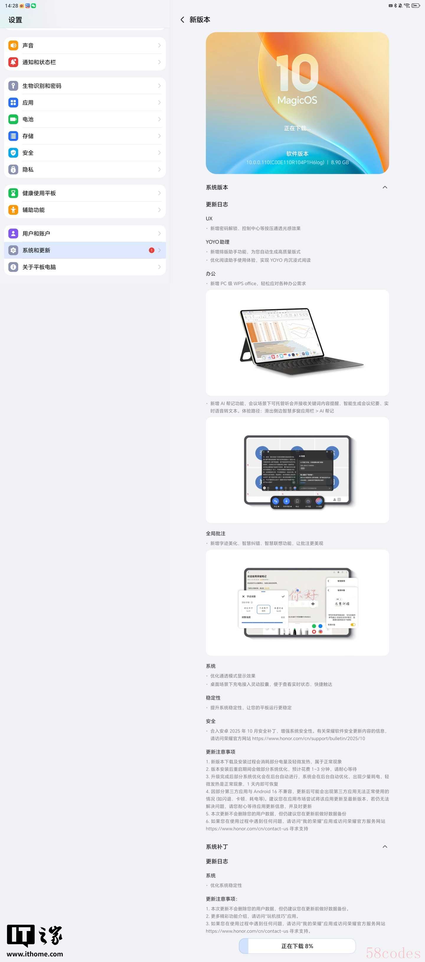 IT之家附荣耀 MagicPad3 系列平板本次更新内容如下: