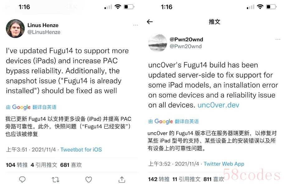 从 Apple 安全内容网站重还发现,有两个内核漏洞是由 Linus Henze 大神提交修补的。