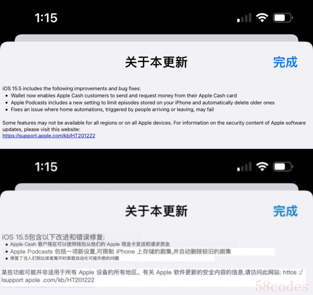 以下是我了解到的iOS 15.5正式版系统两个主要更新内容:
