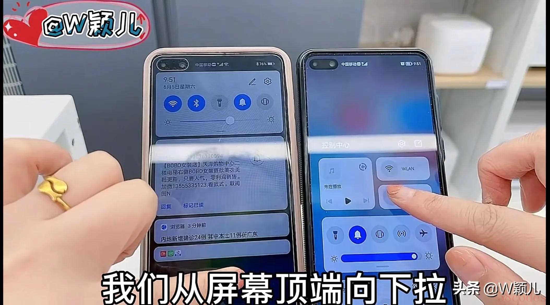 安装之后,我们来对比一下,一款是升级了欧盟系统的华为p40,另一款呢是没有升级欧盟系统的华为p40。这个下拉页面儿是有些变动的。