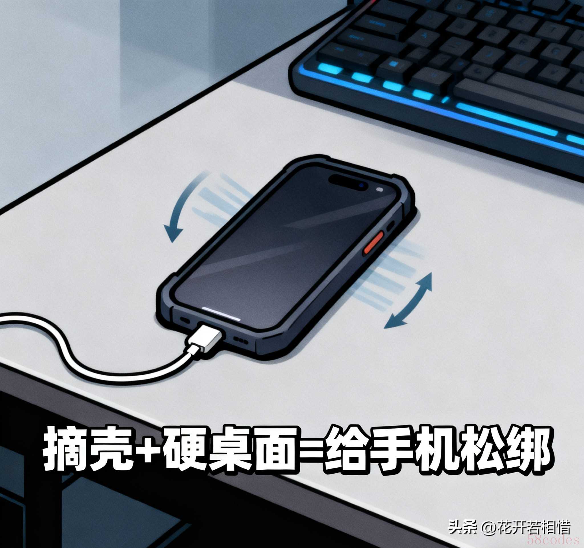 1. 充电时把厚手机壳摘了,放在桌子这种硬邦邦的平面上,别塞枕头底下、沙发缝里——给手机留个“喘气的地方”,热量才能跑出去。