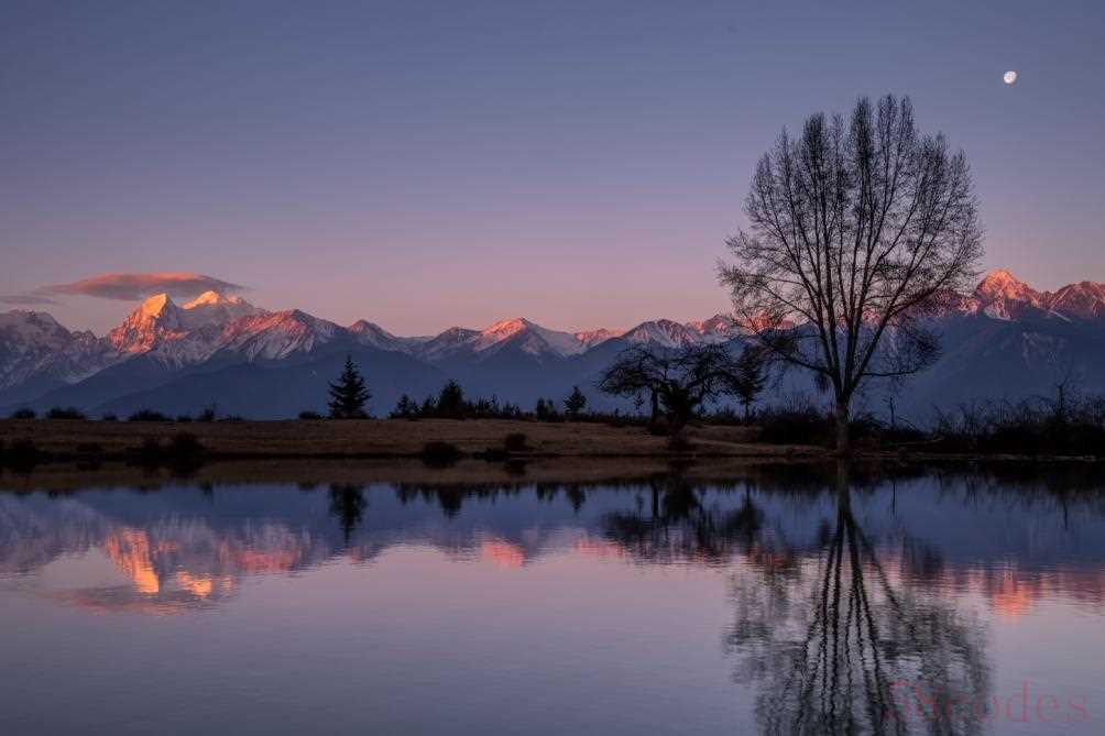 EOS R6 Mark II / RF24-105mm F4 L IS USM / 多张合成在风光摄影中,也经常会使用包围曝光功能,确保高光和暗部的细节。例如,这张照片拍摄于云南说达湖,这里是唯一能够看见梅里倒影的地方。在清晨日照金山的时刻,被阳光照射的雪山很亮,而水里的倒影相对较暗,为了确保金山和暗部细节,就需要包围曝光。