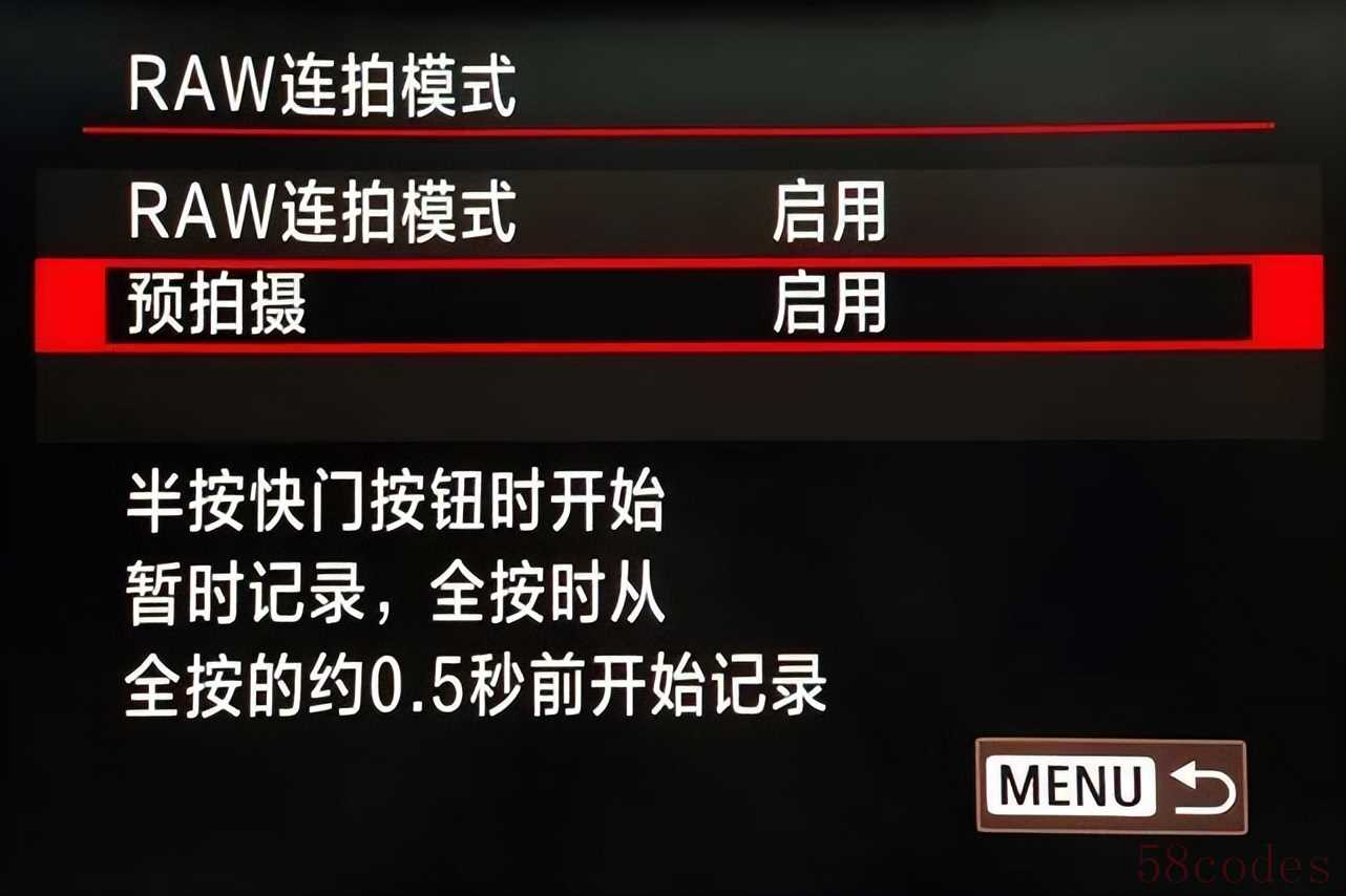 EOS R6 Mark II / RF100-500mm F4.5-7.1 L IS USM / F8 1/800s ISO320预拍摄功能默认是关闭的,在菜单中找到“RAW连拍模式”,按set键进入。此时可以看到“预拍摄”功能是灰色的,不能选择。这时需要先将“RAW连拍模式”启用,然后可以看到“预拍摄”变成正常可选状态。
