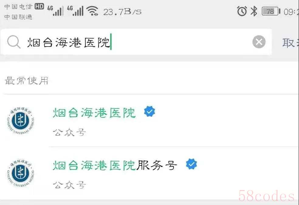 1、在微信中搜索“烟台海港医院“,选择“烟台海港医院”、“烟台海港医院服务号”均可进行查询。