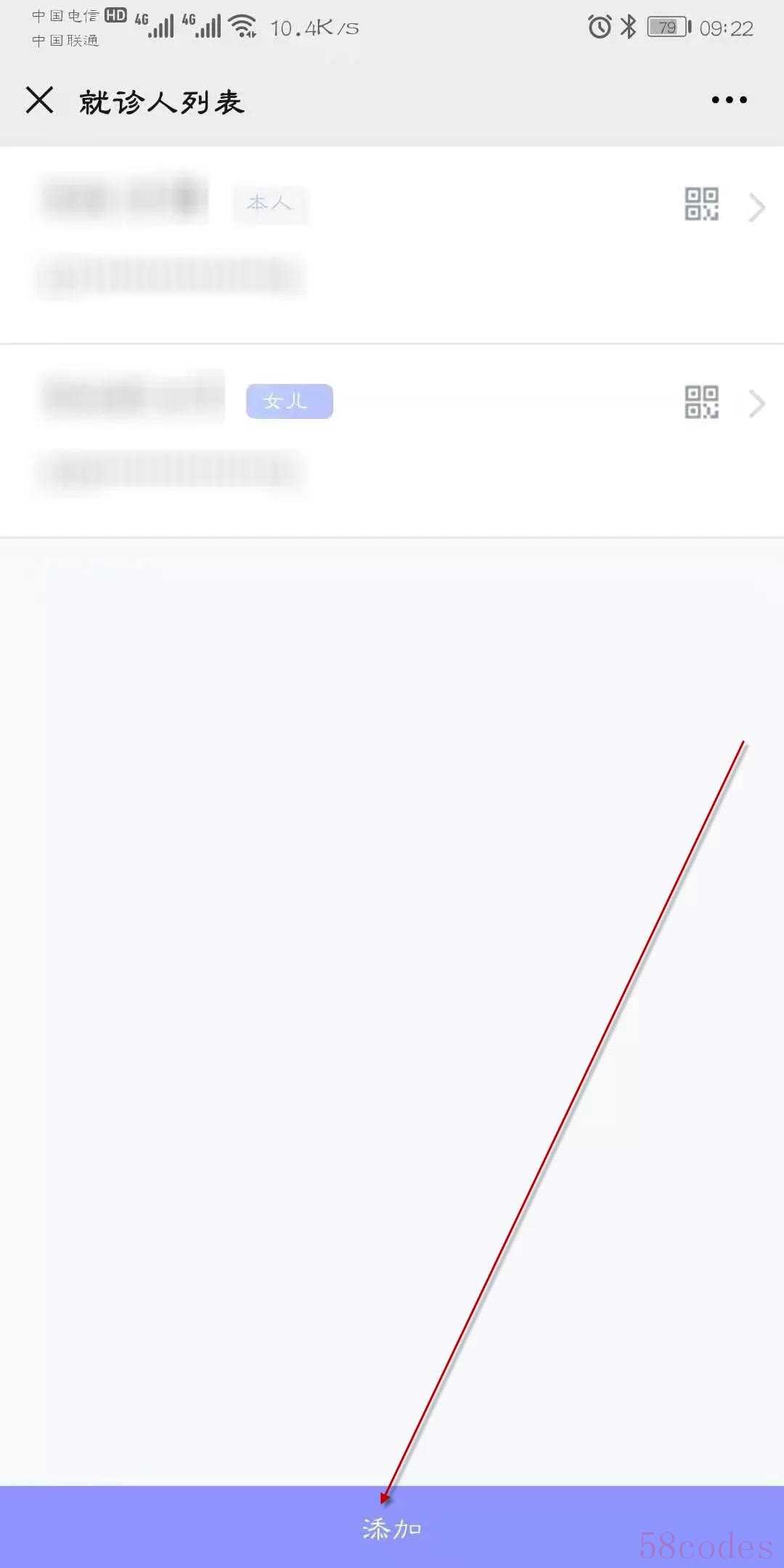 7、如果需要为自己的亲属查询,请点击就诊人,进入就诊人界面。