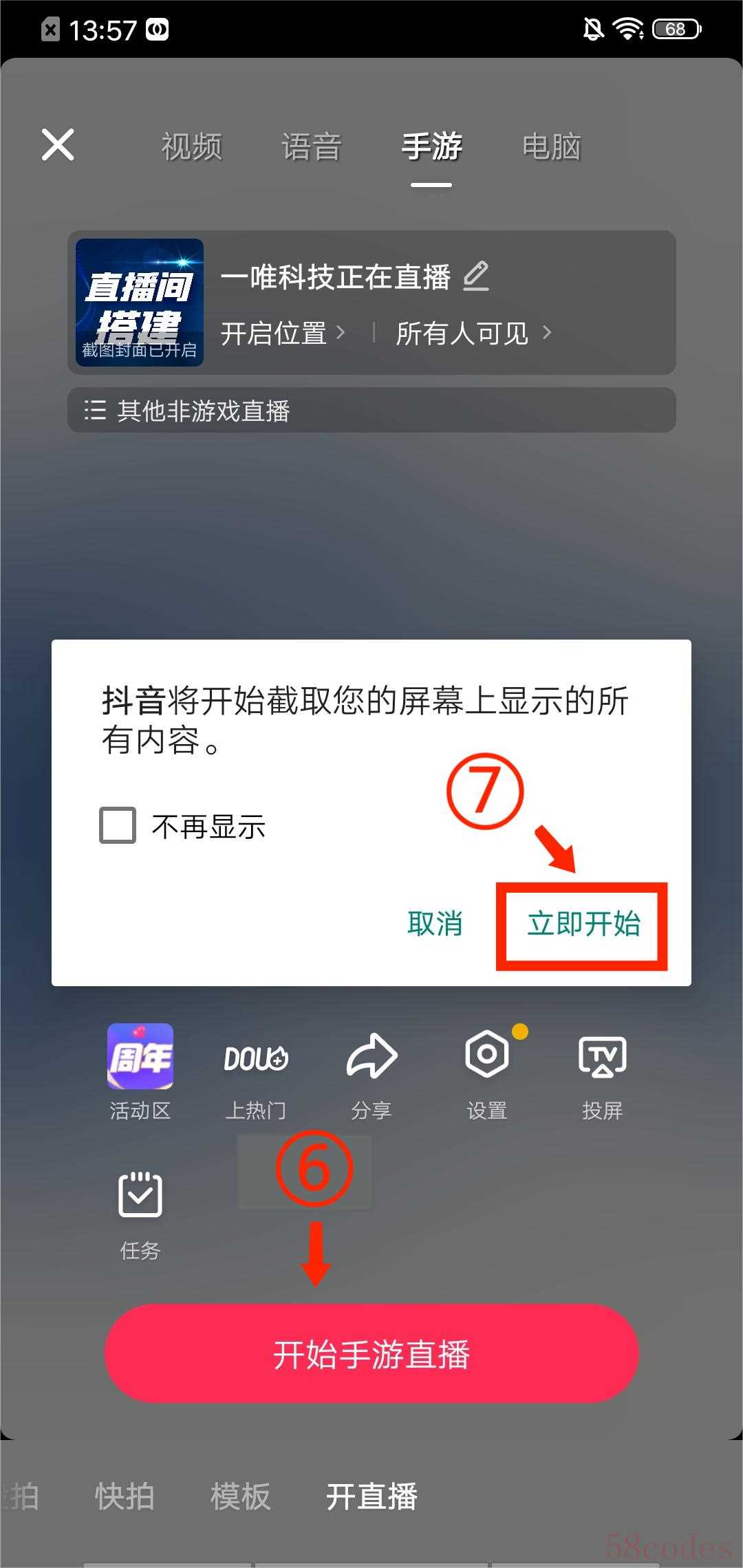 抖音App如何开启手机屏幕直播?