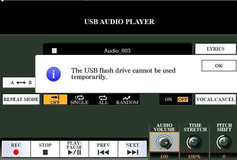 点击琴右上方的【USB AUDIO PLAYER】键(中文面板对应【USB音频播放器】),