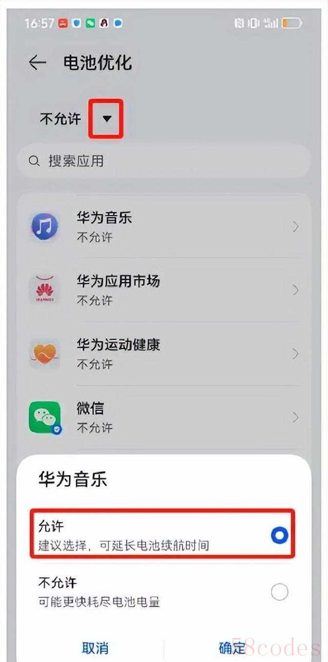 别被文字吓到:很多应用会显示“不允许”,这里的意思是它们不被列为“允许电池优化”的对象,也就是说它们可以在后台比较自由地活动。把它改成“允许”(允许被电池优化)就能限制它们的后台唤醒和频繁运行。举个例子,我把“华为音乐”从“不允许”换成“允许”,系统提示保存,点确认后它后台的动作就少了,那个耗电的感觉明显减弱。