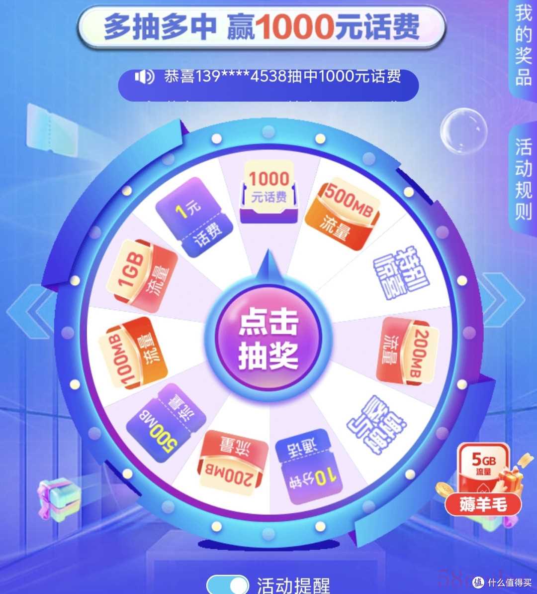 ✅️周末转转乐领取100MM—1G流量有机会得话费