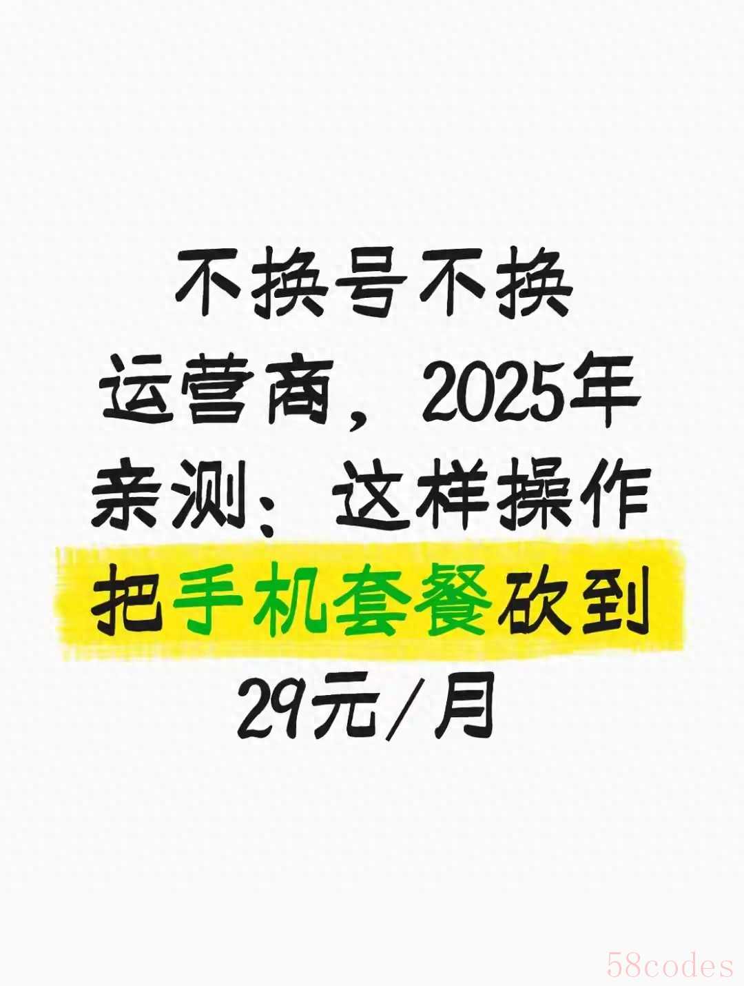 手机套餐越用越贵?别着急换号转网——2025年三大运营商都藏着“低消隐藏套餐”,亲测3步就能把月租降到29元,流量、通话还够用: