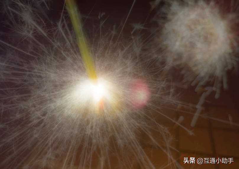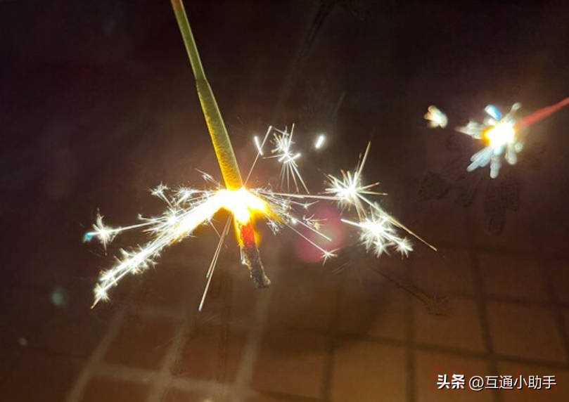 这张照片捕捉了线香烟花的瞬间状态,火花的形状清晰可辨。