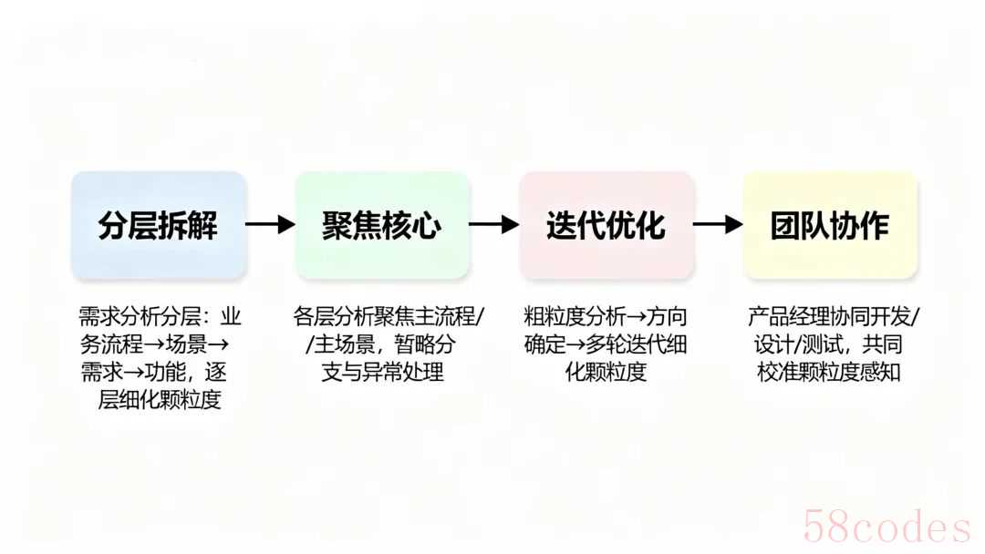 - 迭代优化:需求分析不是一次性的工作,而是一个迭代优化的过程。我们可以先进行粗粒度的分析,确定大致方向,然后在后续的迭代中逐步细化,不断调整颗粒度。