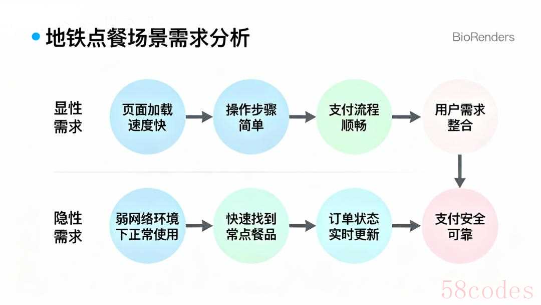 以“地铁点餐”场景为例,我们来分析一下用户可能存在的显性和隐性需求: