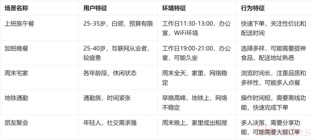 梳理完流程后,接下来就是遍历场景。如果说流程梳理是从宏观上把握业务,那么场景遍历就是从微观上理解用户行为。同一个流程在不同的场景下,用户的需求和行为可能会有很大差异。比如同样是点外卖,用户在办公室、在家里、在地铁上,这三种场景下的需求和使用习惯肯定不一样。