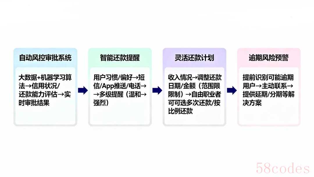 - 灵活还款计划:允许借款人根据自己的收入情况,调整还款日期和还款金额(在一定范围内)。比如对于工资日不固定的自由职业者,可以提供每月多次还款或按收入比例还款的选项。