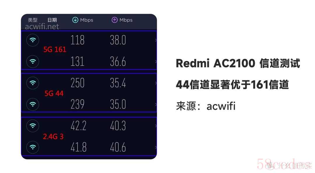 甚至有测试显示,不同路由器在不同信道下的信号强度也有所不同。例如Redmi AC2100在44信道时信号会明显更强。