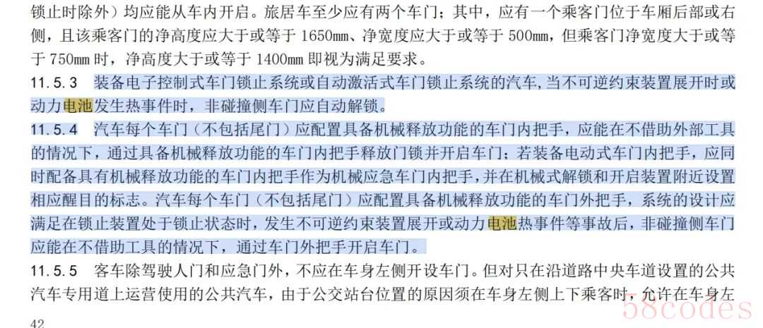 车门内把手须具备机械释放功能,即便有电动把手也要配备机械备份,且要有醒目标识;车门外把手同样需要机械释放功能,发生碰撞或电池热失控时,非碰撞侧车门会自动解锁,无需工具就能打开,方便乘员逃生(隐藏式门把手未被禁止,但需满足机械标准,小米那样的纯微动开关式非机械门把手将被淘汰)。应急窗玻璃厚度不能超过5mm,也不能张贴遮阳膜,避免影响紧急情况下击碎玻璃逃生。而为了防止发生溜车事故,自动驻车系统激活后,一旦解安全带/开门时,将自动切换到驻车挡位。
