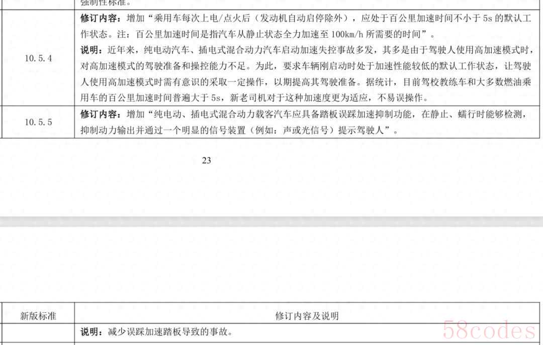 于是新国标提出了能量回收的减速标准,松开加速踏板,整车制动减速度应小于或等于0.8m/s²(相当于60km/h的速度行驶,降速到0需要滑行175米,耗时21秒,完全没有急刹的顿挫感),彻底断绝了为了能量回收而用“反人类”的单踏板可能性。为了杜绝误踩加速踏板的现象,新国标也要求纯电动、插电式混合动力汽车应具备踏板误踩加速抑制功能,在静止、蠕行时能够检测,抑制动力输出并通过一个明显的信号装置提示驾驶人,用技术限制去杜绝一些安全事故的发生。