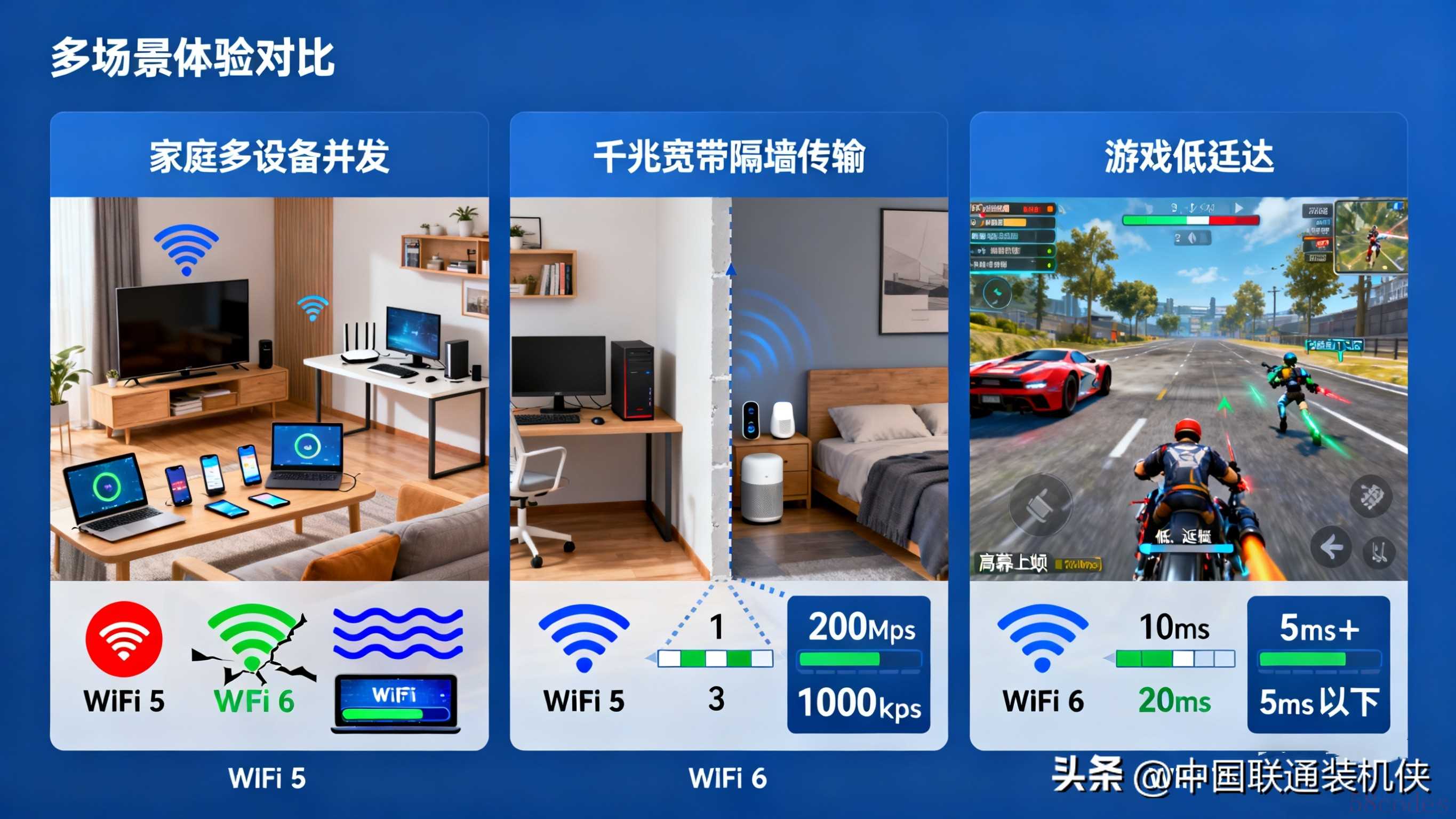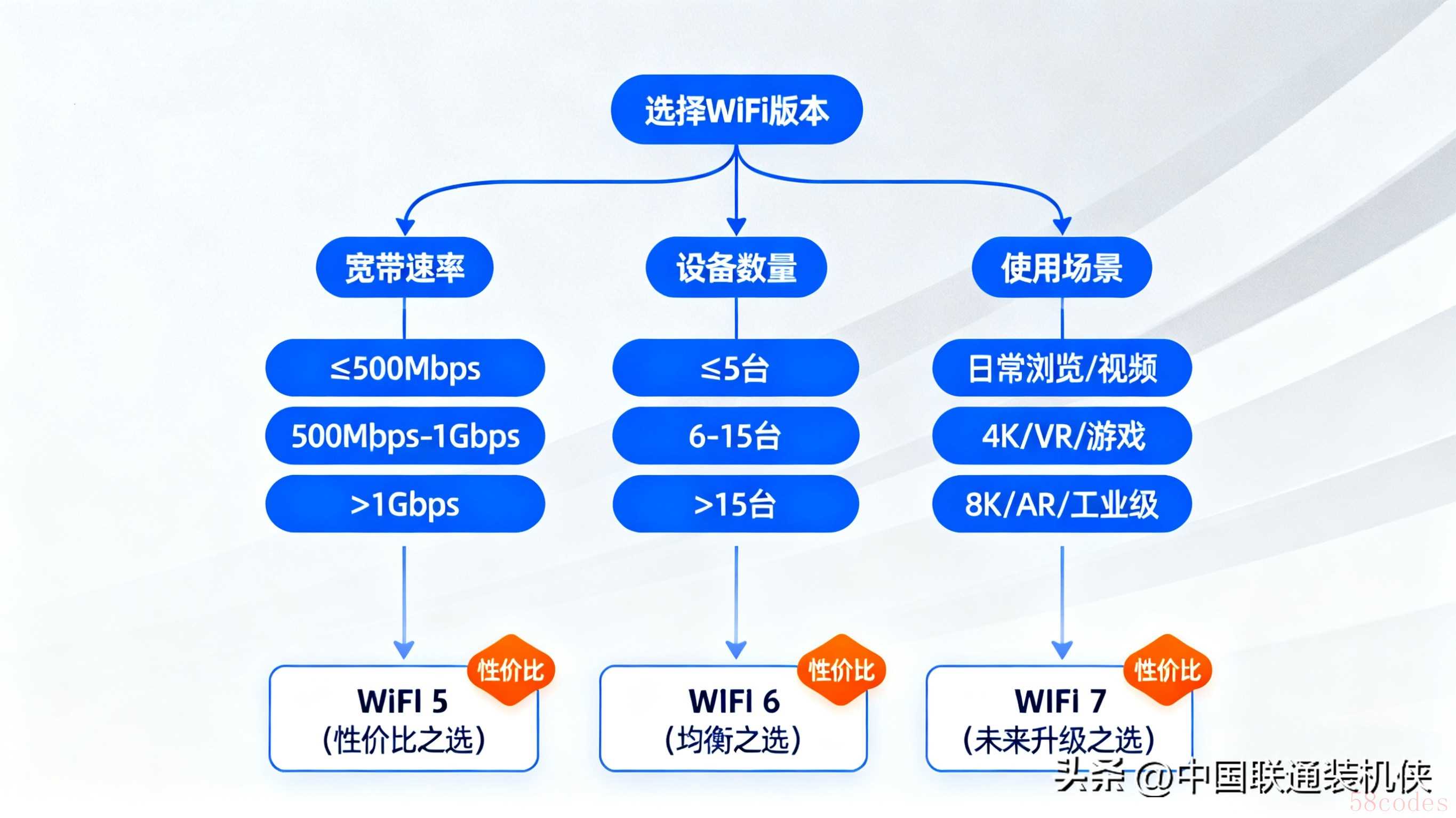 注意:若宽带已升级500M+或设备超15台,WiFi 5会成为网速瓶颈,建议更换。