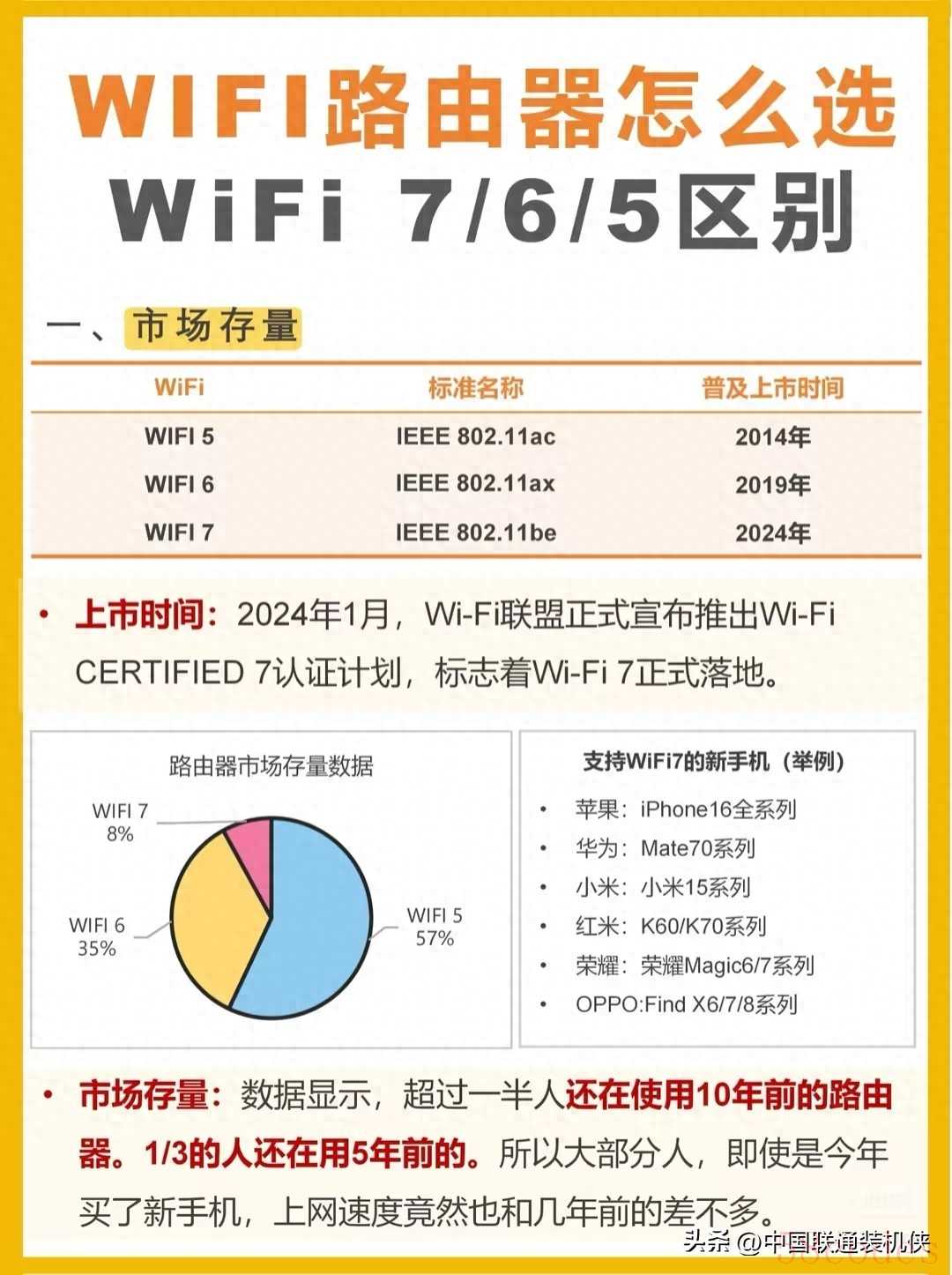 智能家居:多数为WiFi 4/5,可兼容WiFi 6/7路由器,无需额外更换。