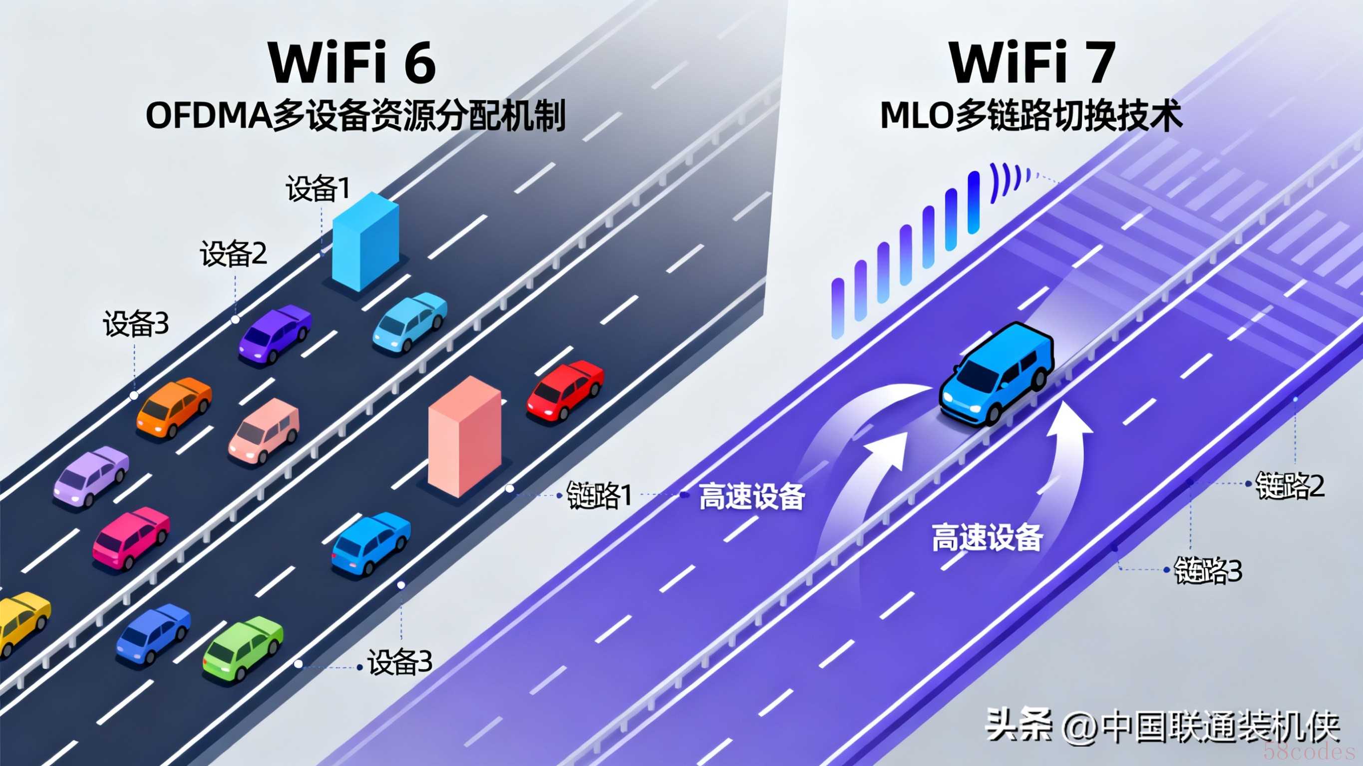 OFDMA技术:把单一信道拆分成多个子信道,像“公交车分座位”,手机、摄像头、智能音箱各占专属资源,不用排队等待,设备越多优势越明显。