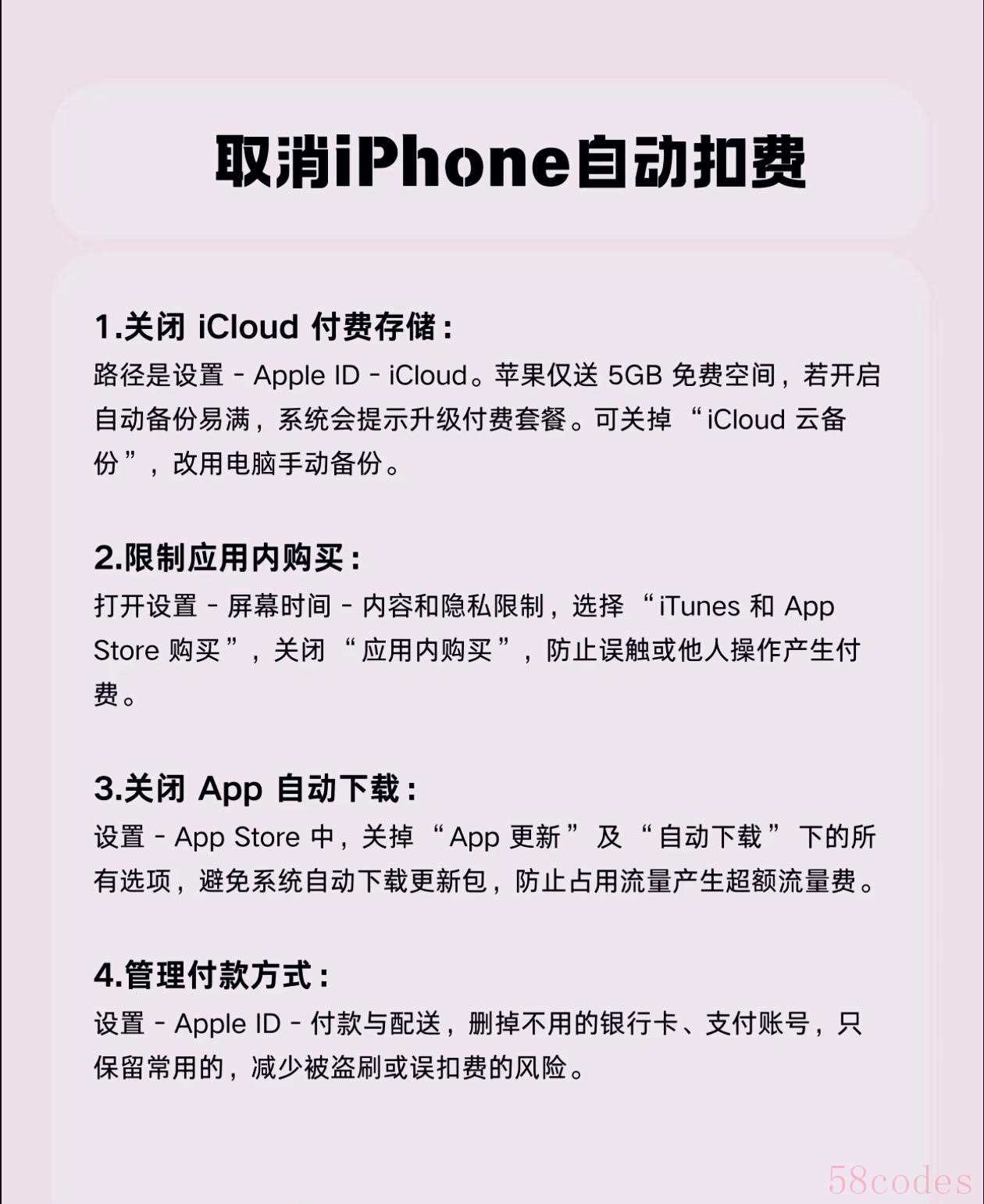 操作步骤:设置→Apple ID→付款与配送→删掉不用的银行卡、支付宝/微信账号,只留1张常用的,降低风险。