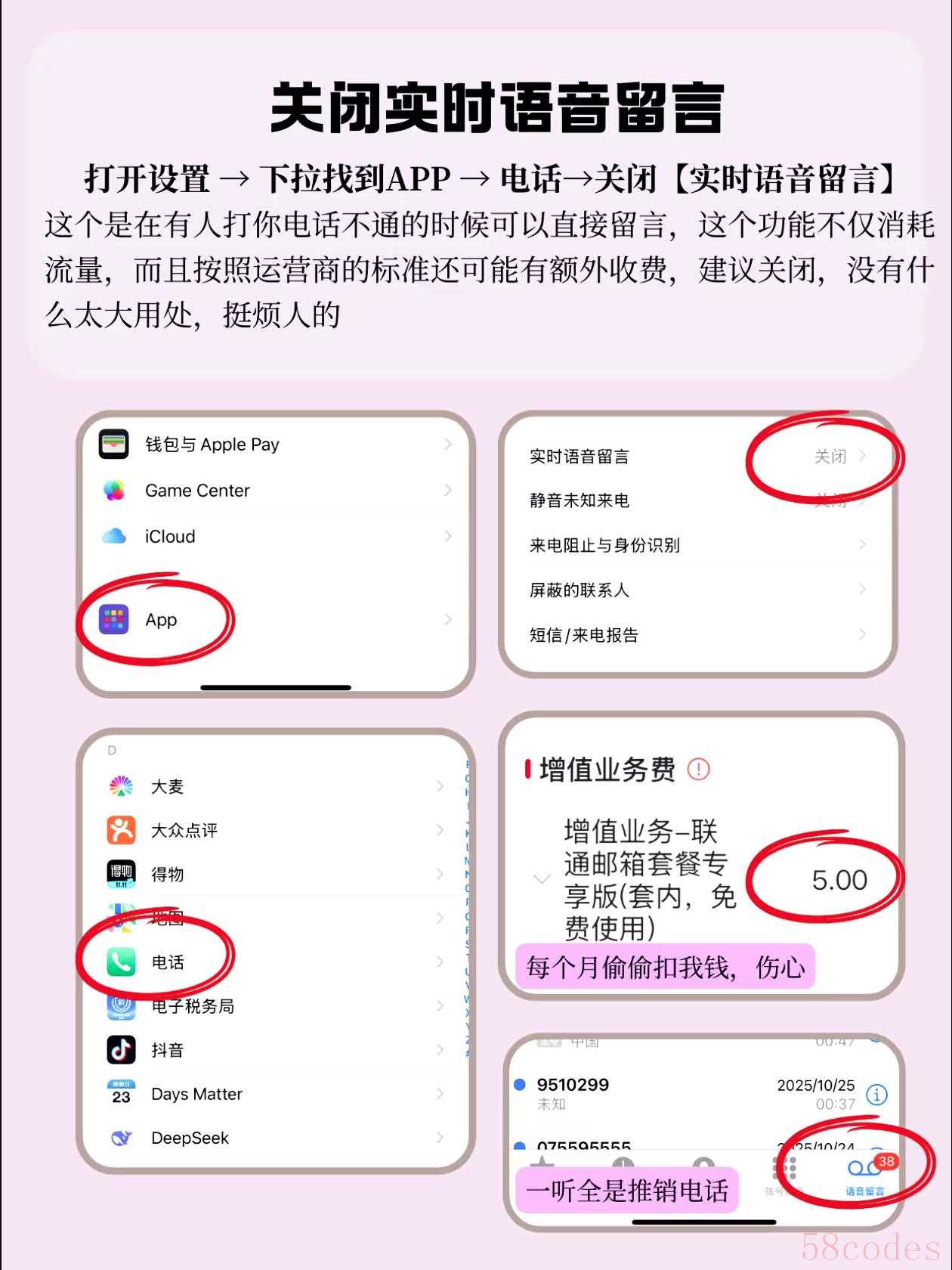 关闭步骤:设置→电话→关闭“实时语音留言”,普通来电提醒完全够用,还能省流量。