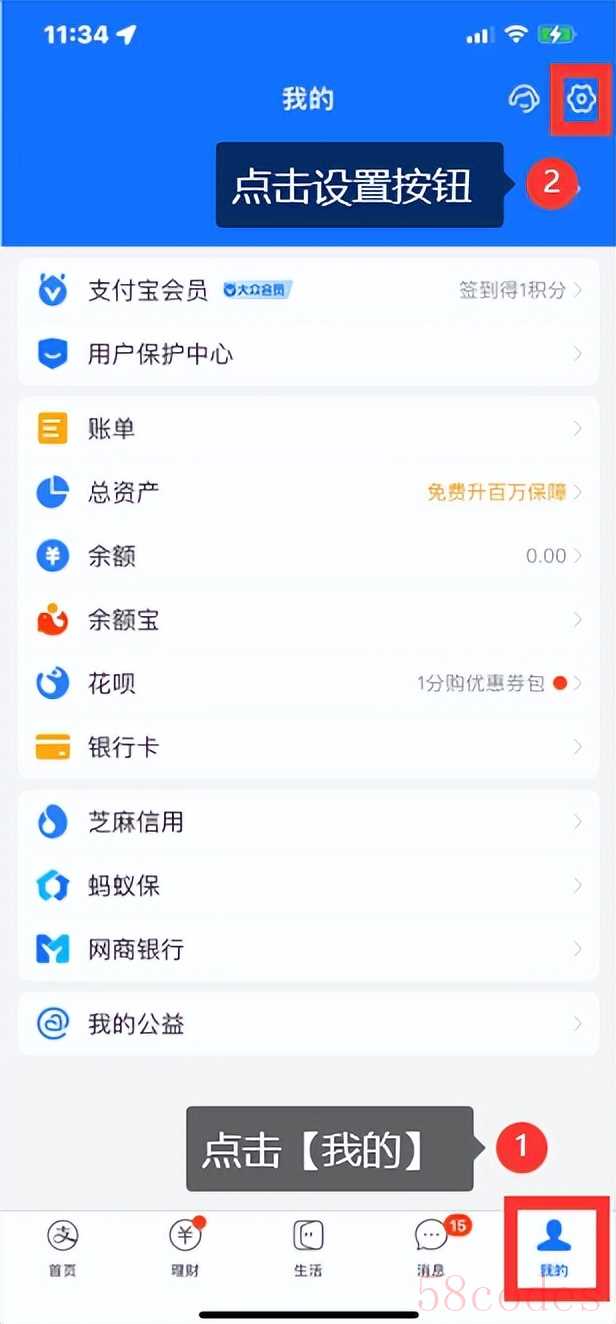 如果小伙伴是使用支付宝开通的自动付费服务的话,想要取消手机APP自动续费,也可以通过支付宝实现。步骤1:打开支付宝,点击右下角的【我的】,紧接着点击右上角的【设置】按钮。