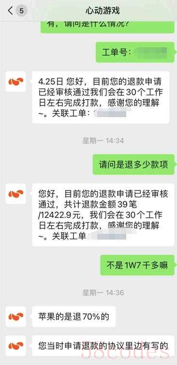 而当汪先生再次联系心动网络公司客服时,对方则表示:“能退的只能是70%,另外30%只能联系苹果官方处理。”