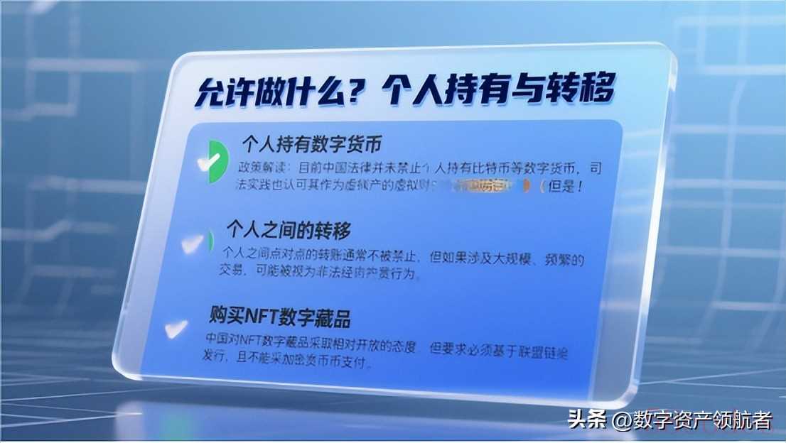 政策解读:目前中国法律并未禁止个人持有比特币等数字货币,司法实践也认可其作为虚拟财产的属性。但是!这并不意味着鼓励持有,只是承认其作为虚拟财产的法律地位。2. 个人之间的转移