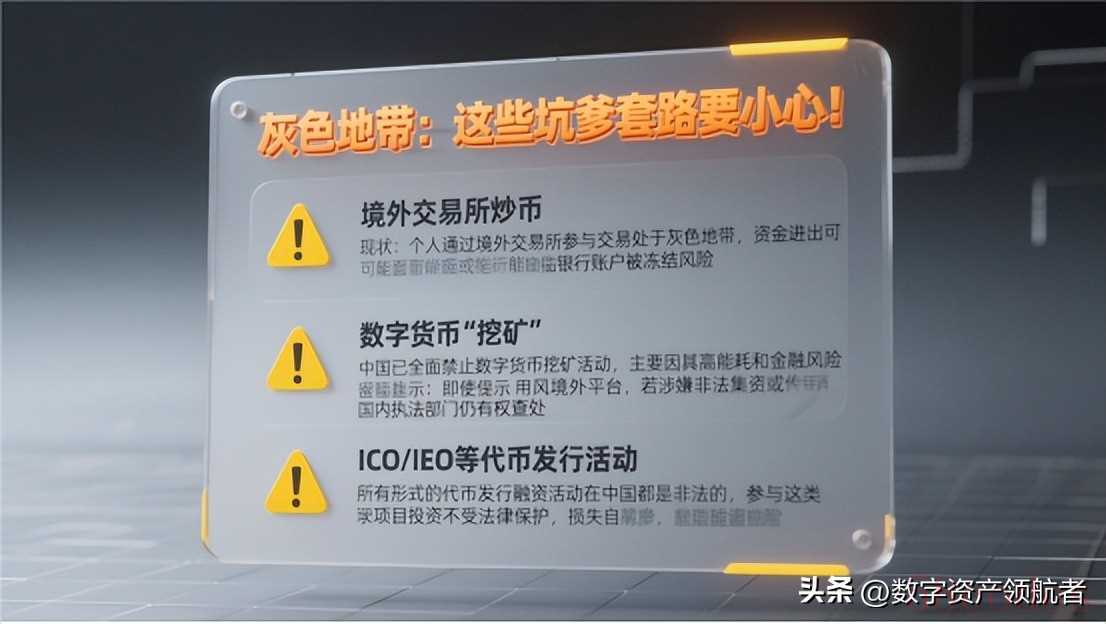 现状:目前个人通过境外交易所参与交易处于灰色地带,但资金进出可能面临银行账户被冻结的风险。风险提示:即使使用境外平台,如果涉嫌非法集资或传销,国内执法部门仍有权查处。2. 数字货币"挖矿"