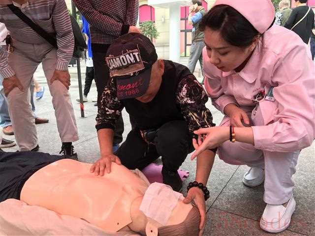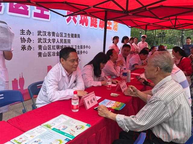 义诊现场,还到来自武汉大学人民医院专家团队现场为居民义诊,此外,红钢城街社区卫生服务中心的护士徒手复苏演练,现场给居民传授急救技巧,居民参与热情很高。上百位居民免费测量了血压和血糖。