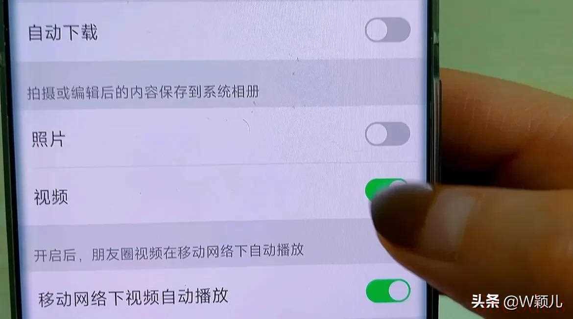 因为自动下载呢,就是平时我们在看朋友圈的时候所看到的一些图片或者是视频啊,如果你这个开关开着的话,它就会把所有你看过的图片还有视频保存到你的手机里面,然后我们选择关闭。