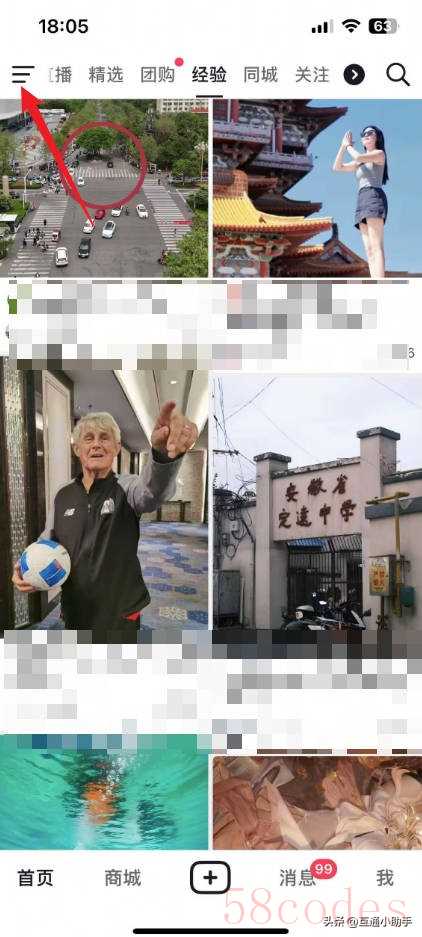 1、在苹果手机上打开抖音APP,进入到首页后,点击“三”图标。