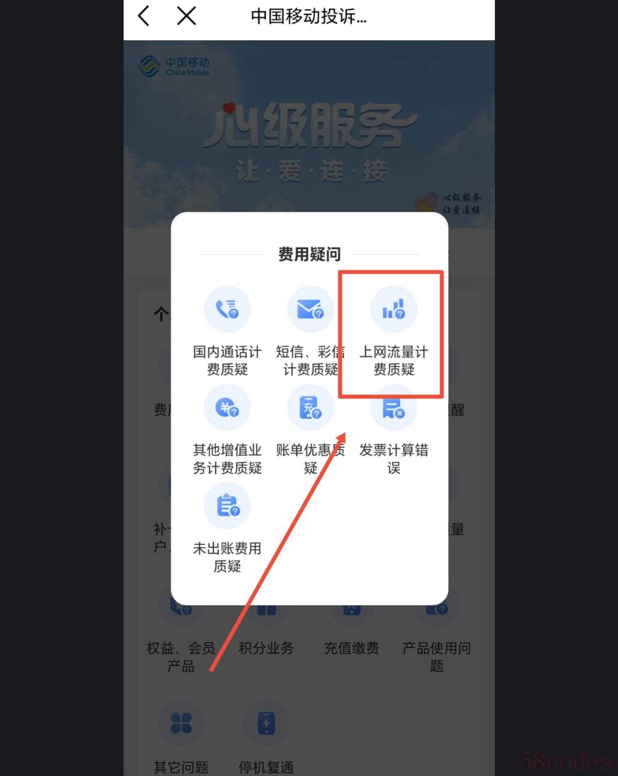 3. 选择【费用疑问】→ 【上网流量计费质疑】,进入填单页面。