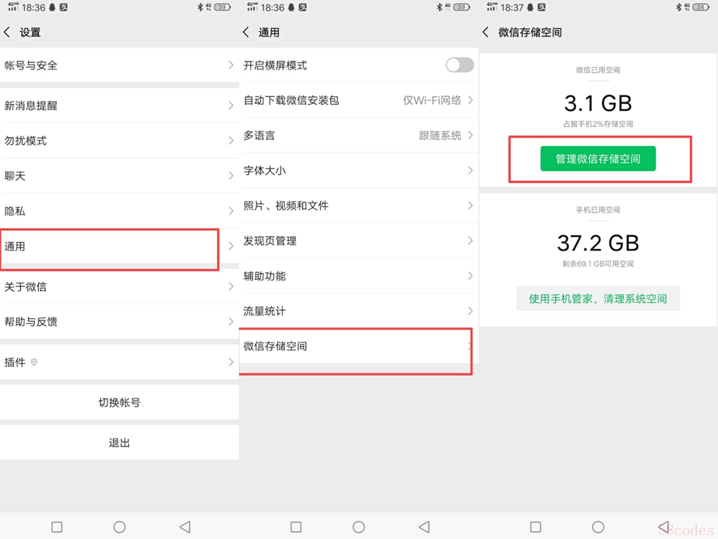 点击通用,再点击微信存储空间,这个时候会自动扫描微信占用了多少内存,然后我们点击微信管理微信存储空间,再点击管理当前微信聊天数据,