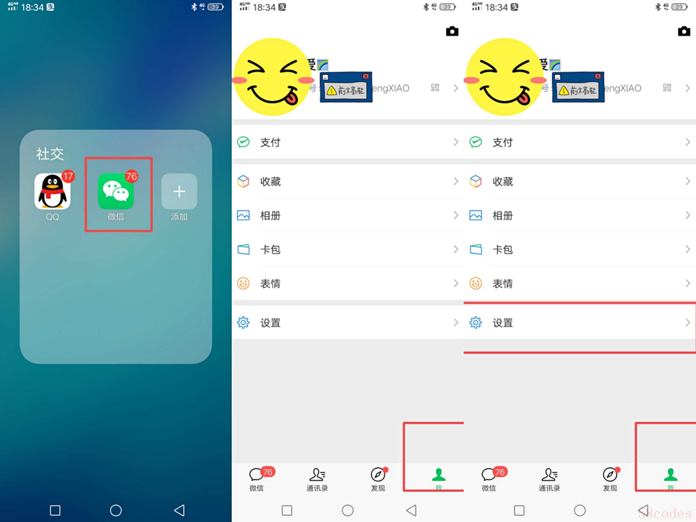 点击微信,因为我们每天都会用微信聊天,都会产生很多的垃圾,所以我们也要清理,点击微信右下角“我”再点击设置,
