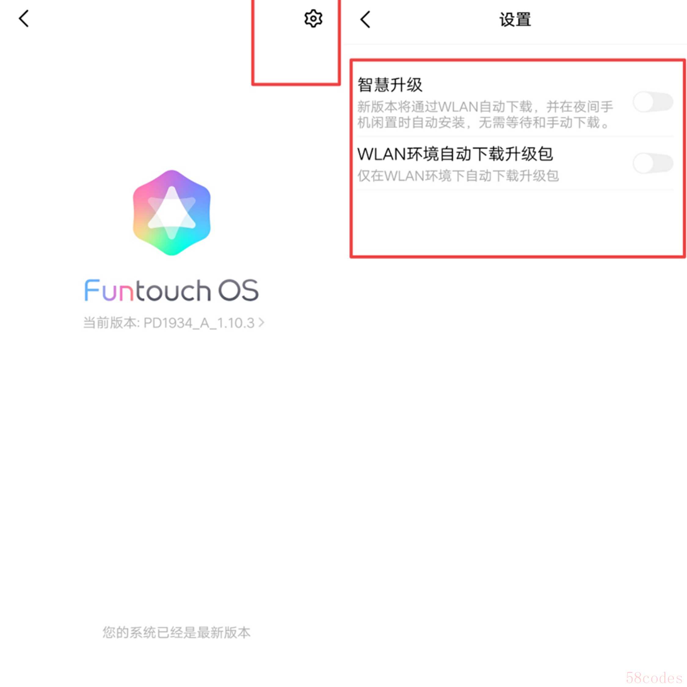 然后再点击右上角设置小图标,把智慧升级关闭,这样手机系统就不会在后台自动升级了。