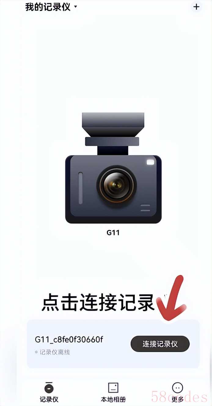 - 打开下载好的 App,点击 “连接记录仪”,找到相机对应的 Wifi 名称,输入密码;