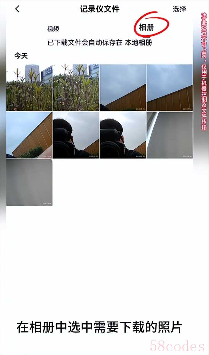 四、文件传输:轻松获取拍摄成果拍好的照片和视频想存到手机里?简单:- 点击 “记录仪文件”,相机里存的所有内容都在这儿;