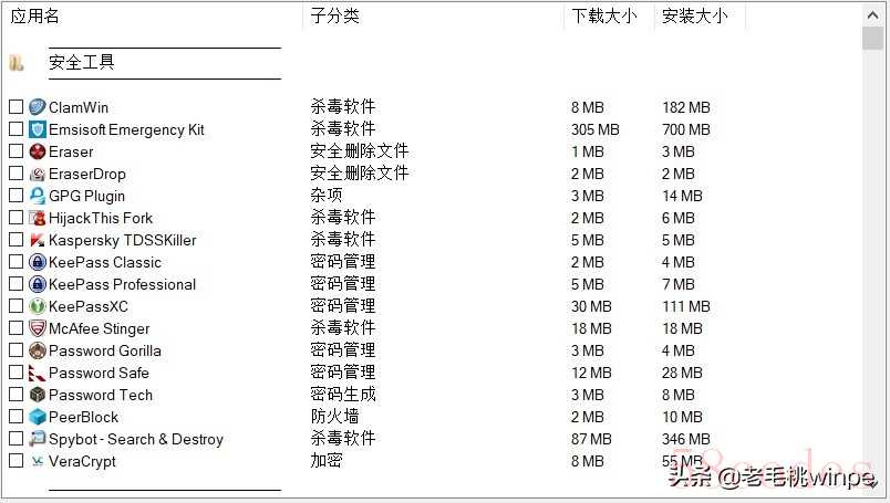 第一步:安装完成后,我们在界面中会看到很多软件,其中有安全工具、办公工具、编程开发等十多项的分类。这时我们勾选自己需要的应用名,点击界面右下角的【下一步】即可安装。