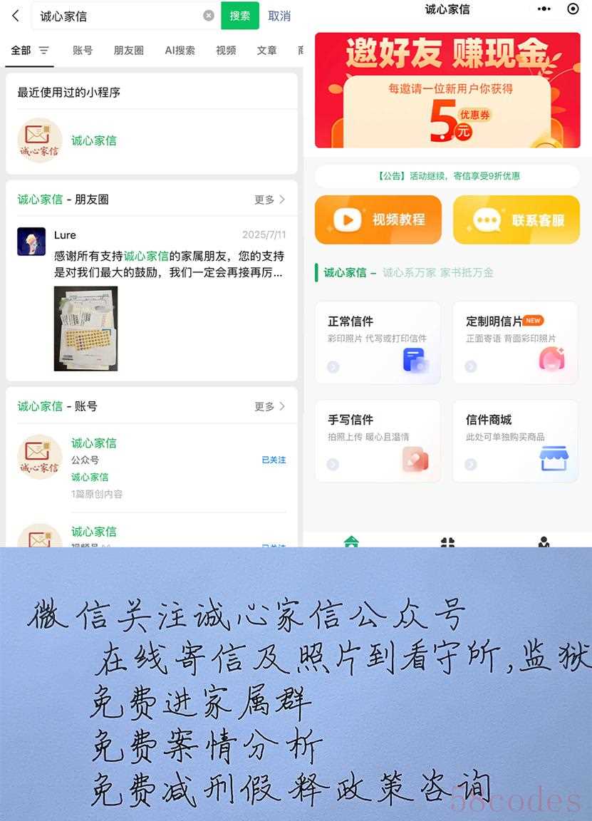 用便捷方式寄信:现在不用跑邮局,打开微信关注 “诚心家信” 公众号,就能在线写信、上传照片(如家人合影、孩子涂鸦),平台会审核内容合规性,当天打印寄出,避免因格式、内容问题被退回。尤其对湖南地区家属,等对方到具体监狱后,用这种方式寄信,能更快传递关心。