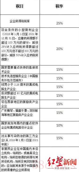 红星资本局对比发现,我国的企业所得税税率为25%。符合条件的小型微利企业税率为20%;一些国家重点扶持的高新技术企业,技术先进型服务企业,符合条件的集成电路企业,污染防治第三方企业,西部地区、广东横琴、福建平潭、深圳前海等地区鼓励类产业企业,可以享受到15%的税率;国家规划布局内的重点软件企业和集成电路企业享受10%的税率。