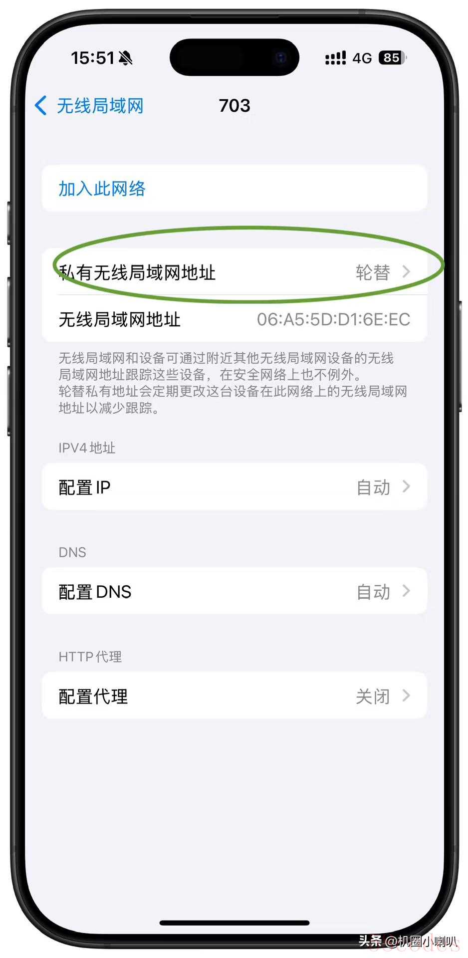- 找到【私有无线局域网地址】选项
