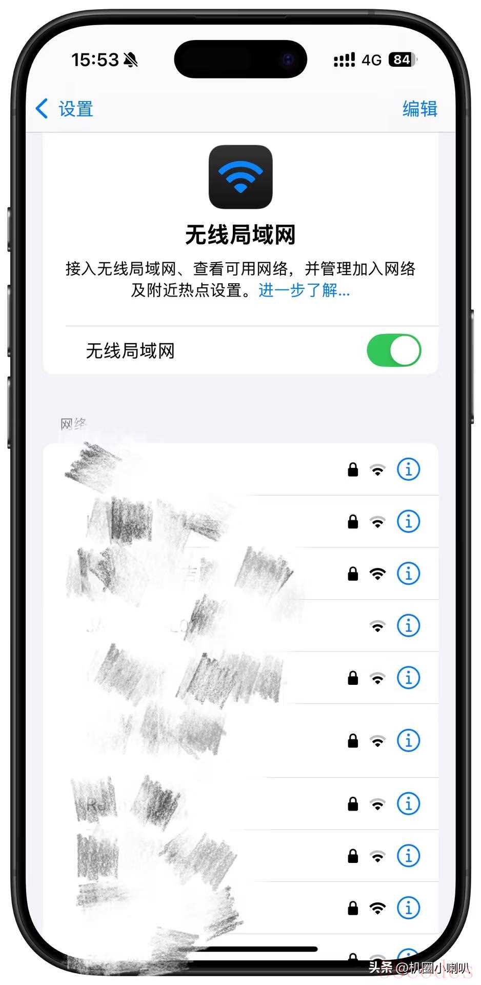 - 点击你已连接的WiFi网络名称旁边的【i】图标
