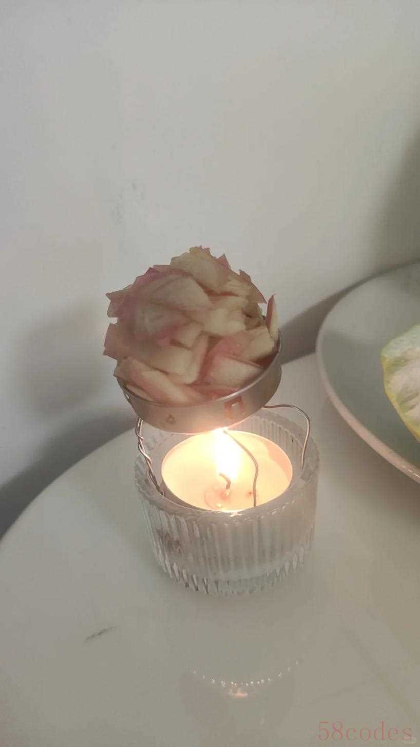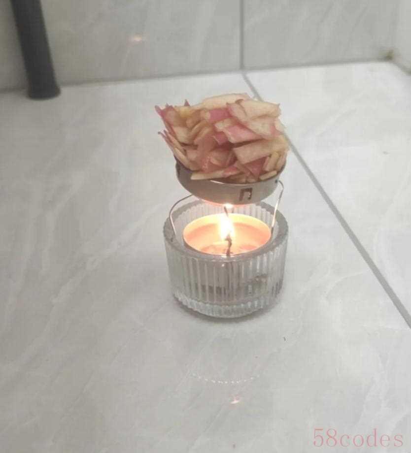 苹果皮切碎之后放进自制的熏炉当中,这样在点燃蜡烛之后,屋子里面就会有一股暖暖的苹果味了,非常的舒服,