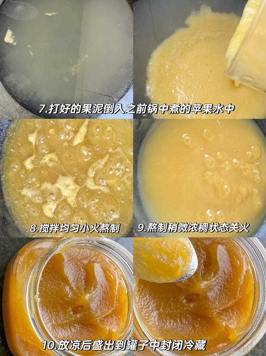 将打好的苹果泥放进锅里,再加入之前煮苹果时剩下来的苹果水,用小火开始熬制,直到熬制到浓稠的状态就可以关火了。放凉之后将其放进罐子里,就可以密封保存了。